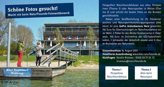 Der Naturfreunde-Verlag Freizeit und Wandern sucht gute und aktuelle Fotos von Naturfreundehäusern und Natursportlern in Aktion. Denn sowohl die Planungen für das Häuserverzeichnis 2016 als auch das neue Natursport-Ausbildungsprogramm haben begonnen.