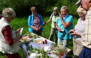 Die Exkursion um Travemünde und der Natura Trail, ausgehend vom Naturfreundehaus Priwall, übertraf alle Erwartungen. Die Landschaftsführerin Ulrike Westphal führte die Gruppe über die Ostseeküste in den Travemündener Hafen, vorbei an dem Segelschiff Passat und an einigen skurrilen Neubauprojekten. Diese Entwicklungen entzweit die Travemünder Bevölkerung und "sprengt" die Architektur des alten Stadtkerns . Auf dem Natura Trail Südlicher Priwall wurden Pflanzen und Kräuter gezeigt, erklärt und auch verköstigt. Rast- und Brutplätze von den unterschiedlichsten gefiederten Bewohnern und Gästen wurden beobachtet.