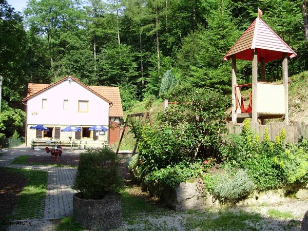 Gegenüber der Ruine Hohen-Urach, oberhalb der Jugendherberge, liegt das Naturfreundehaus auf 465 müNN.