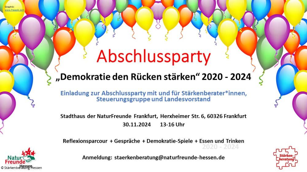 Wir treffen uns, um das Ende der Förderphase "Demokratie den Rücken stärken!" der Stärkenberatung Hessen zu feiern.