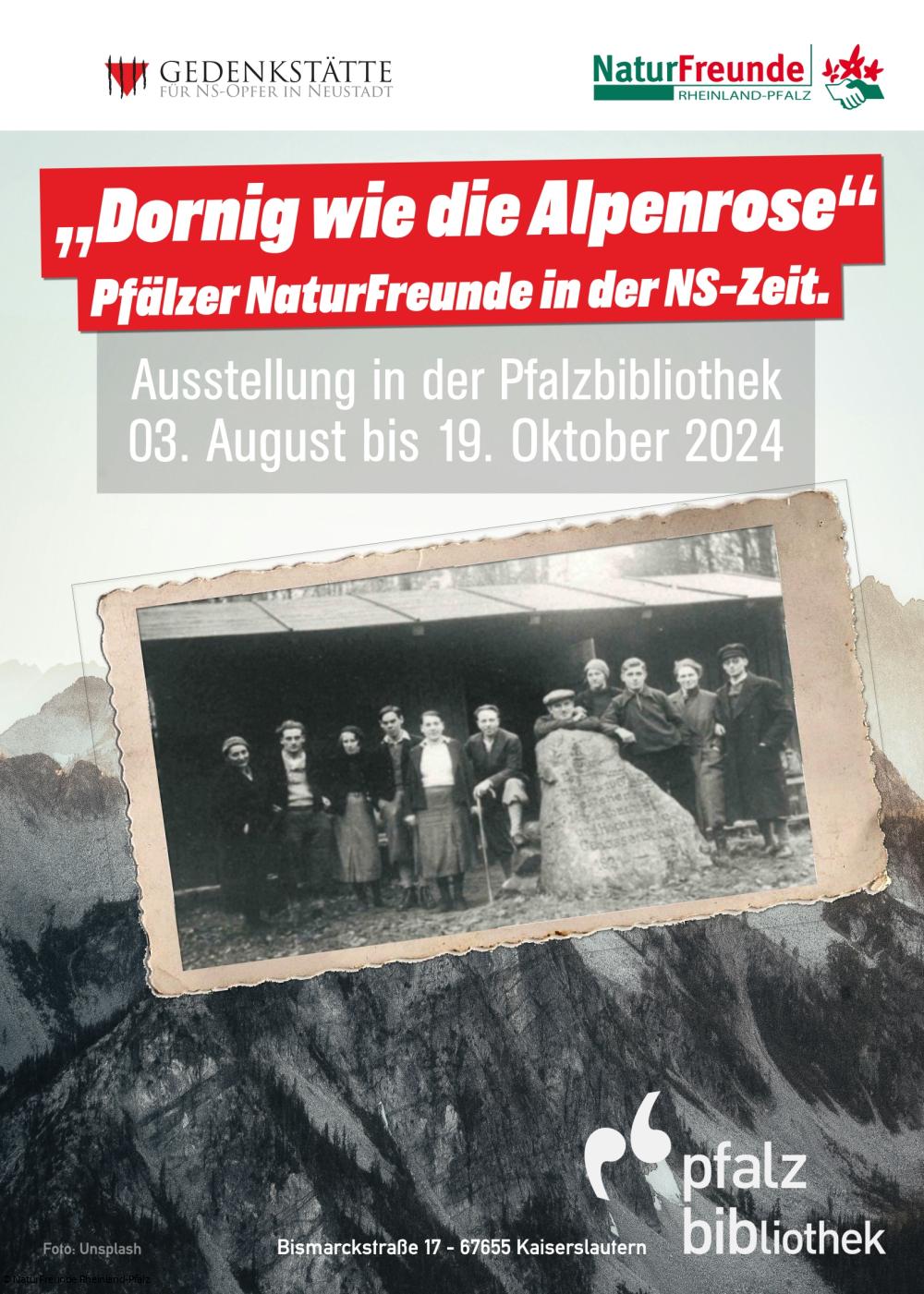 Die Ausstellung entstand aus einer Kooperation der Naturfreunde Rheinland-Pfalz und der Gedenkstätte für NS-Opfer in Neustadt. Neun Roll-Ups geben einen Einblick in die Lebensgeschichten von mutigen Naturfreunden und Naturfreundinnen aus der Pfalz während der Zeit des Nationalsozialismus. Die Ausstellung zeigt, wie diese trotz eines Verbots der Organisation ab 1933 und drohender Verfolgung Mittel und Wege fanden, für ihre Überzeugung einzutreten und Widerstand zu leisten. Ergänzt werden die Tafeln durch Vitrinen mit Objekten, Dokumente und Fotos der Naturfreunde Kaiserslautern sowie der Pfalzbibliothek.