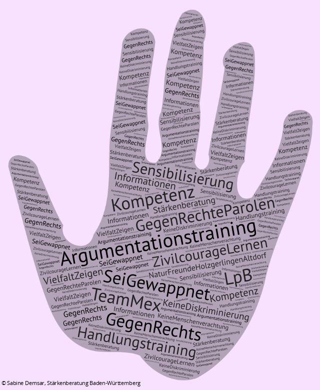 Dann besuche unser Argumentationstraining, das über menschenverachtende Einstellungen und Diskriminierung informiert und gleichzeitig sensibilisiert. Hierbei werden Strategien für das richtige Verhalten in der Konfrontation mit rechten Parolen und Vorurteilen vermittelt und in Kleingruppen eingeübt.