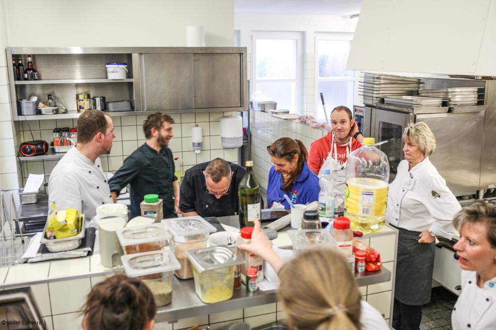 Die Schulungsköchin Marketa Schellenberg lehrte an zwei Tagen, vom 30.11. - 1.12.2015, die Grundlagen der veganen Küche. Kurze Theorie-Workshops gaben Einblick in die Entwicklung der veganen Küche, Warenkunde und Einkauf sowie Speiseplanzusammenstellung. Im Vordergrund stand natürlich der Praxisteil: Die Teilnehmer haben gemeinsam veganes Frühstück, Mittagessen und Abendessen zubereitet.
