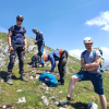 Das Wetter für den nächsten Tag sah nicht gut aus. Tiefe Wolken, hohe Regenwahrscheinlichkeit – nicht das beste Wetter für eine derartige Tour am Grat. Trotzdem starteten wir zur Karwendelbahn, um uns dort mit Tim, dem zweiten Ausbilder, zu treffen. Gleich mit der ersten Bahn ging es hinauf. Am Einstieg zum Klettersteig hingen noch tiefe Wolken, die sich dann schnell auflösten und uns einen perfekten Tag bescherten. Der Abend war geprägt von Theorie und Vorbereitung auf die am Mittwoch geplanten Lehrproben. Bau von Seilgeländern zwischen den Türgriffen in der Pension, Vorbereitung zur behelfsmäßigen Bergrettung und Erarbeitung des Schulungsablaufs.