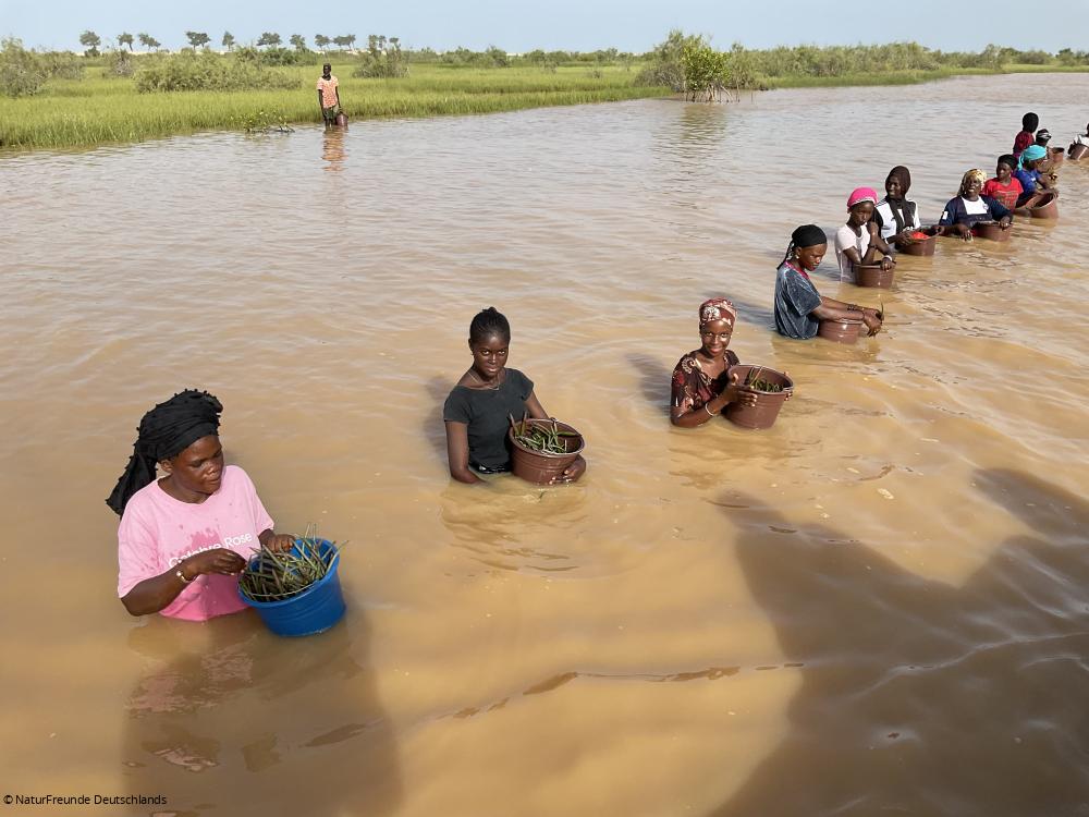 Die NaturFreunde im Senegal (ASAN) und JustAct, eine Mitgliedsorganisation der NaturFreunde Internationale (NFI) in Gambia, haben im Juni 2021 ein Projekt zur Mangrovenaufforstung gestartet. In Kooperation mit den NaturFreunden Deutschlands sowie den NaturFreunde-Landesverbänden in Baden, Württemberg und Berlin pflanzen sie Mangrovenbäume in Saint-Louis (Senegal) und Janjanbureh (Gambia) – ein gemeinsamer Beitrag zu mehr Klimagerechtigkeit.